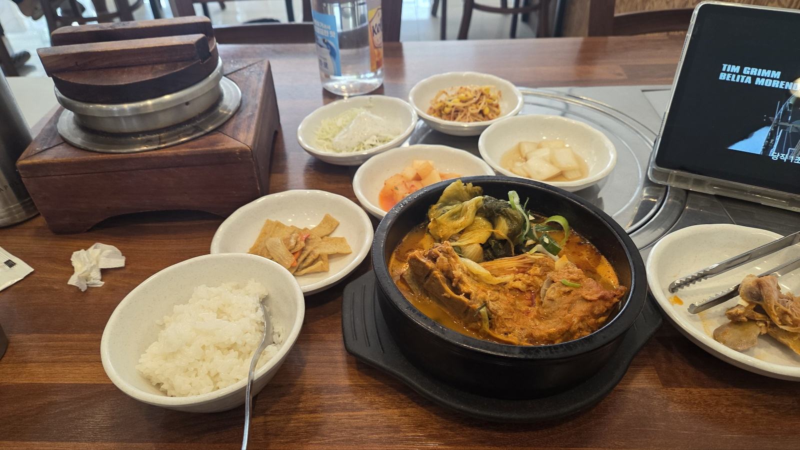 지나가는 길에 런치타임... 솥밥 + 뼈다귀해장국이 8천원이라는 안내를 보고...