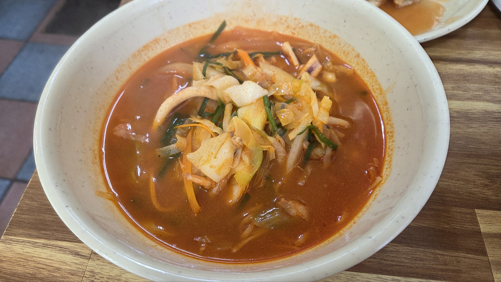 짬뽕 국물에는 면도 조금 들어 있다.