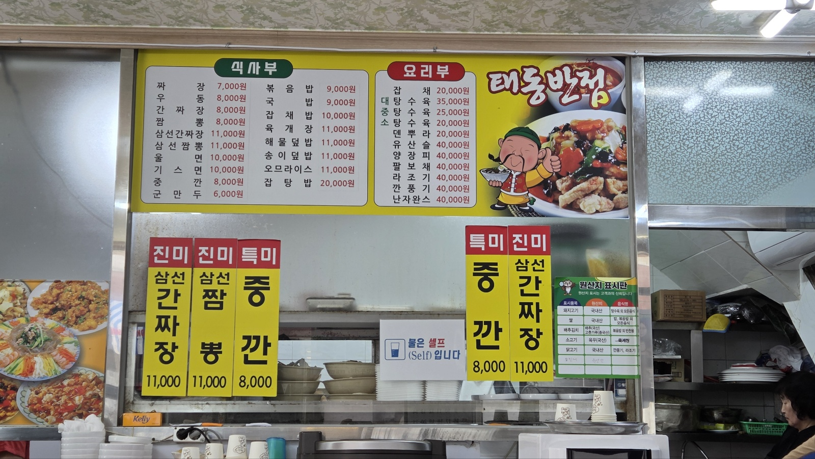 메뉴판. 중깐에 탕수육, 짬뽕 국물도 나오는데, 중깐이 중화루보다 1천원이 더 저렴하다.