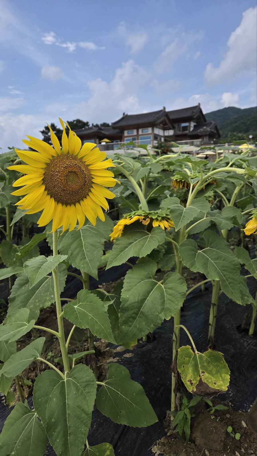 어...만개라며....해바라기가 다 땅을 보고 목이 꺽여있다....