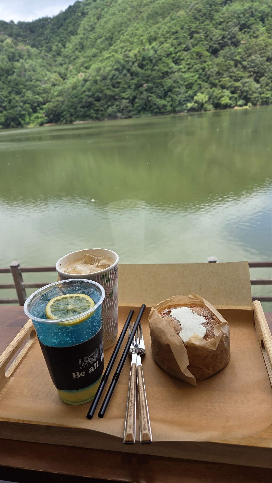 창가에 앉아서 그냥 푸르른 배경과 물을 보면서 시간을 보내다가 이제 집으로....