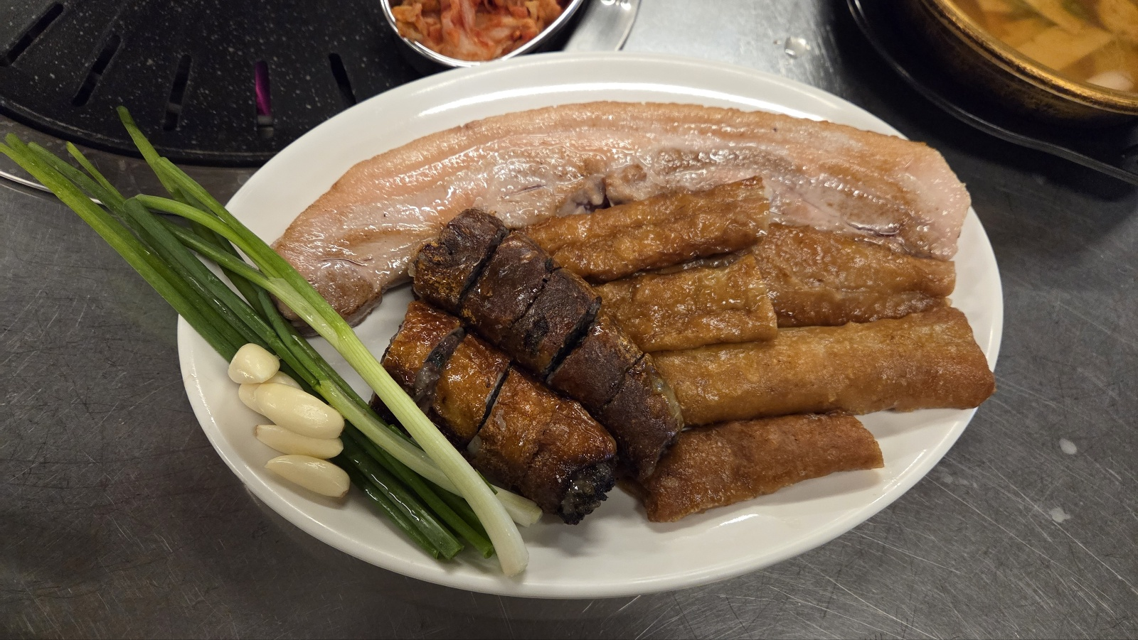 초벌을 통해서 나온 막창, 막창순대, 삼겹살